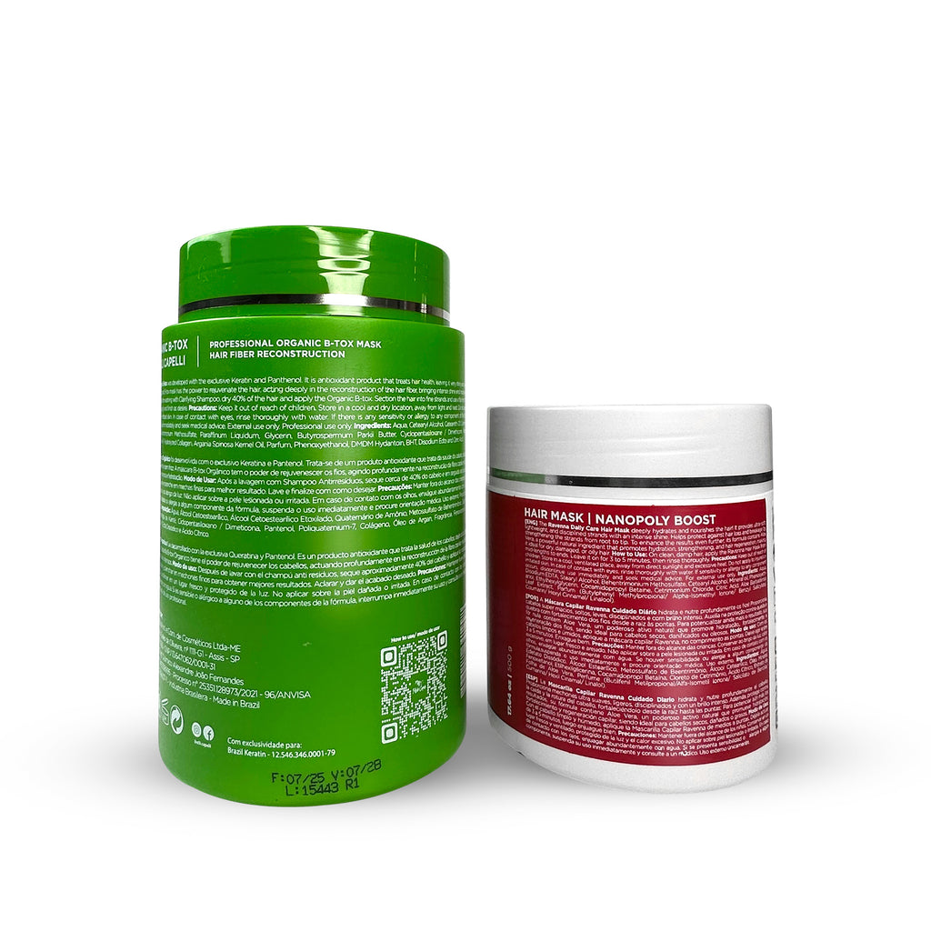 The Ravenna B-tox Organic Kit was developed to provide deep hydration, hair rejuvenation, and anti-frizz care, ideal for damaged, chemically treated, or frizz-prone hair. The Ravenna Hair Mask deeply nourishes the hair, promoting softness, lightness, and intense shine, while strengthening the strands from root to tip. The B-tox Organic complements the treatment with keratin and panthenol, rejuvenating the hair, reconstructing the fiber, and enhancing shine and smoothness. Together, they deliver healthy, nourished, and visibly transformed hair with reduced frizz, improved elasticity, and long-lasting manageability.