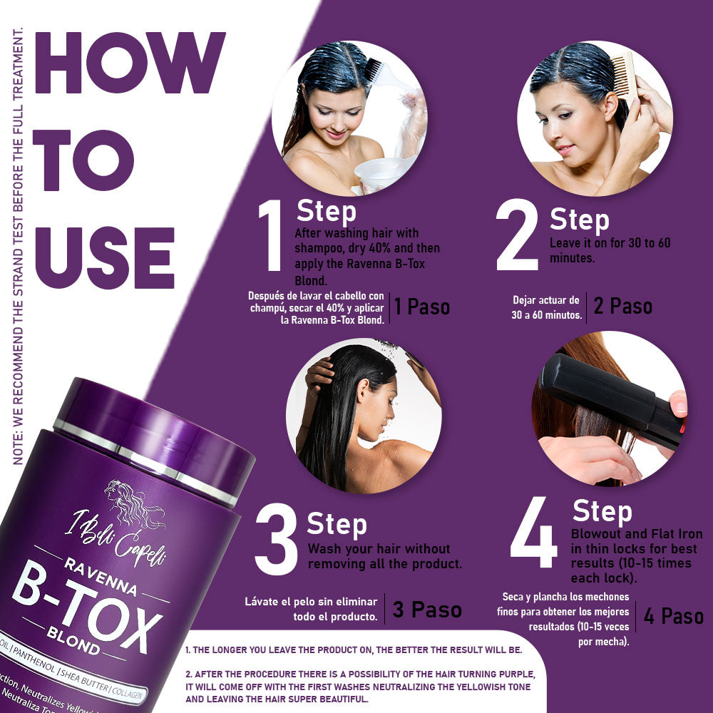 OBS: For better results we recommend the use of the Anti-Residue Shampoo before using Ravenna Blond Btox.